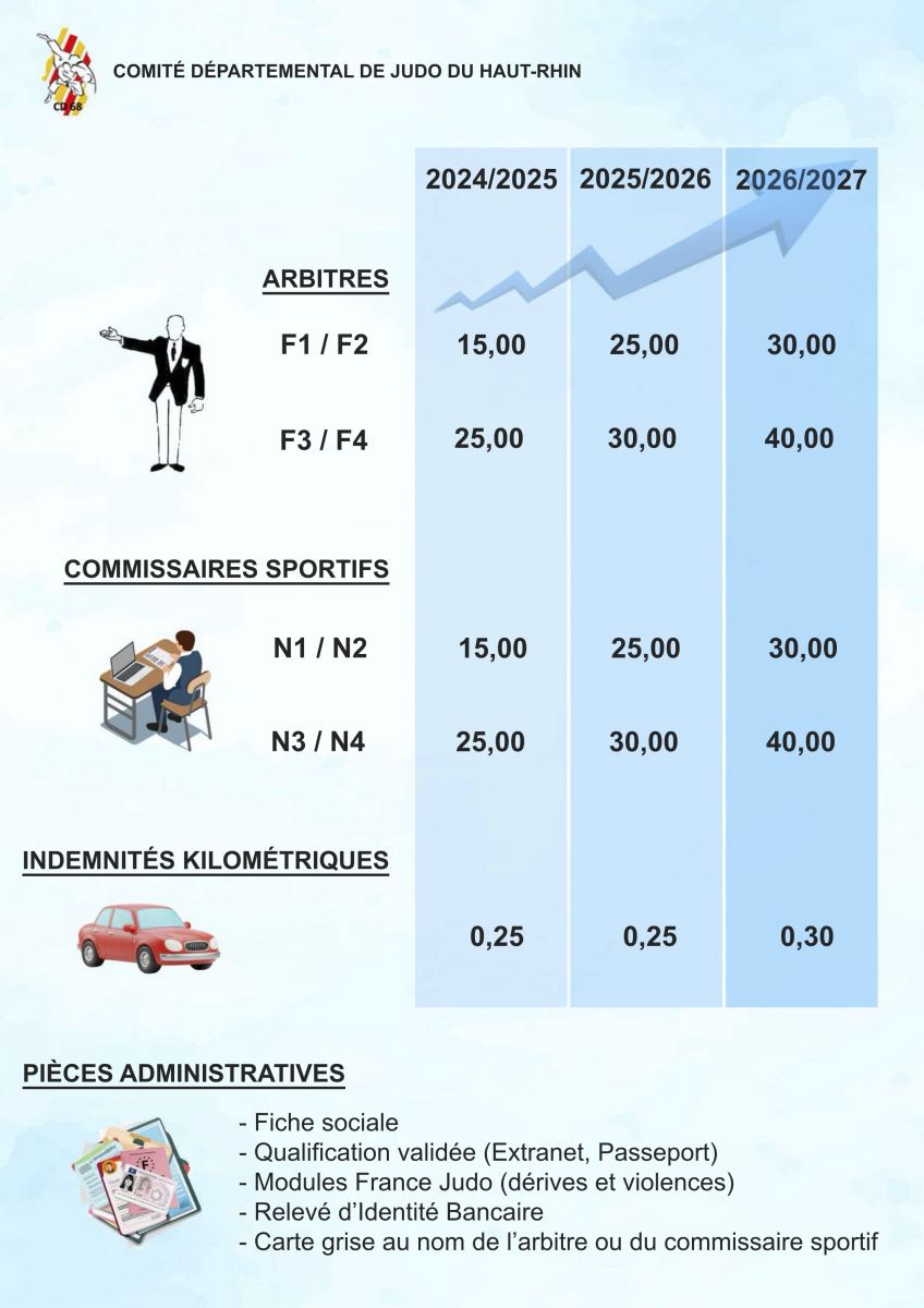 Le 16.10.2025, le CD68 lors de la réunion du Comité Directeur a décidé l'application de la grille de vacation suivante pour le corps arbitral : Grille des vacations.
